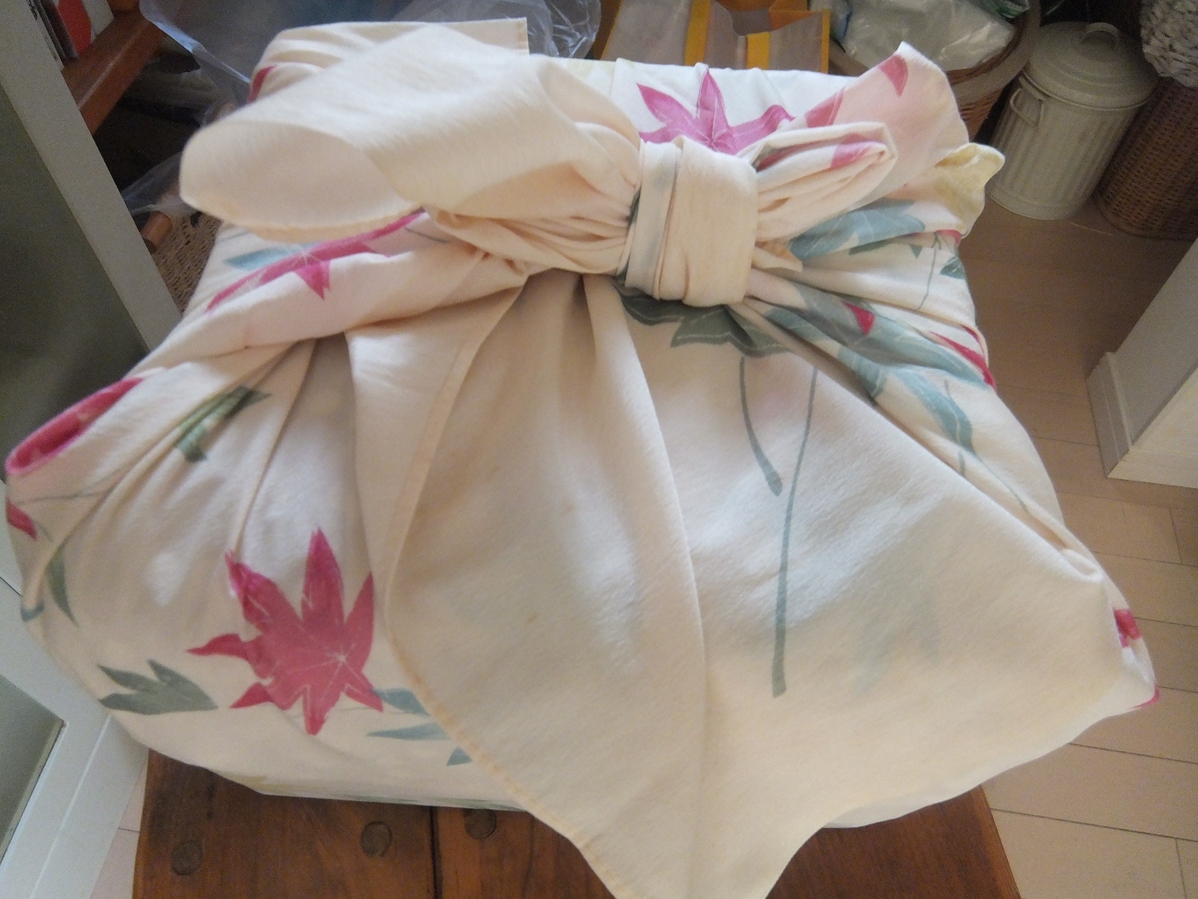 今や懐かし・・・風呂敷で包んで!いざ!!