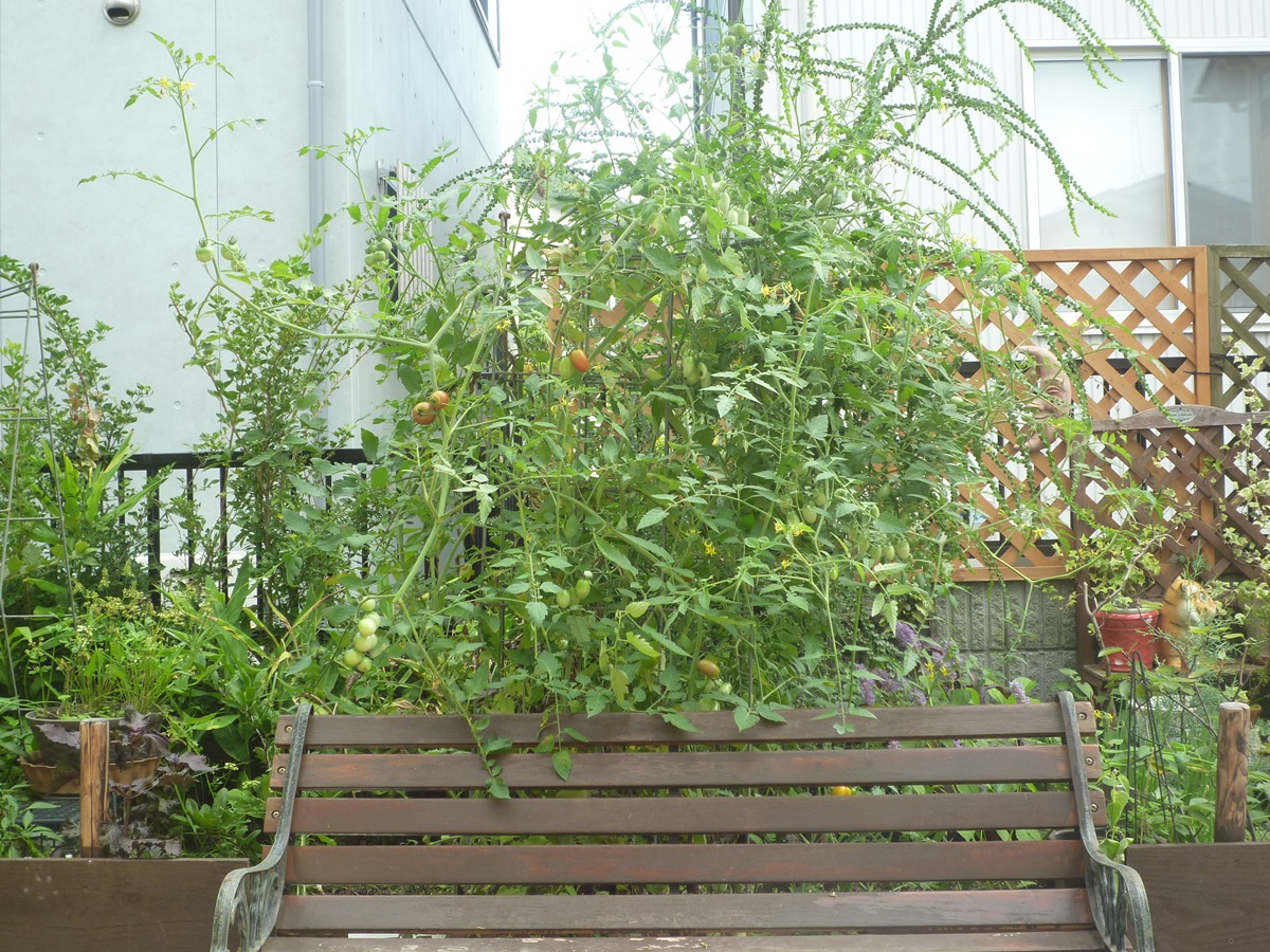 ミニトマトは手入れが出来ずに伸び放題!!