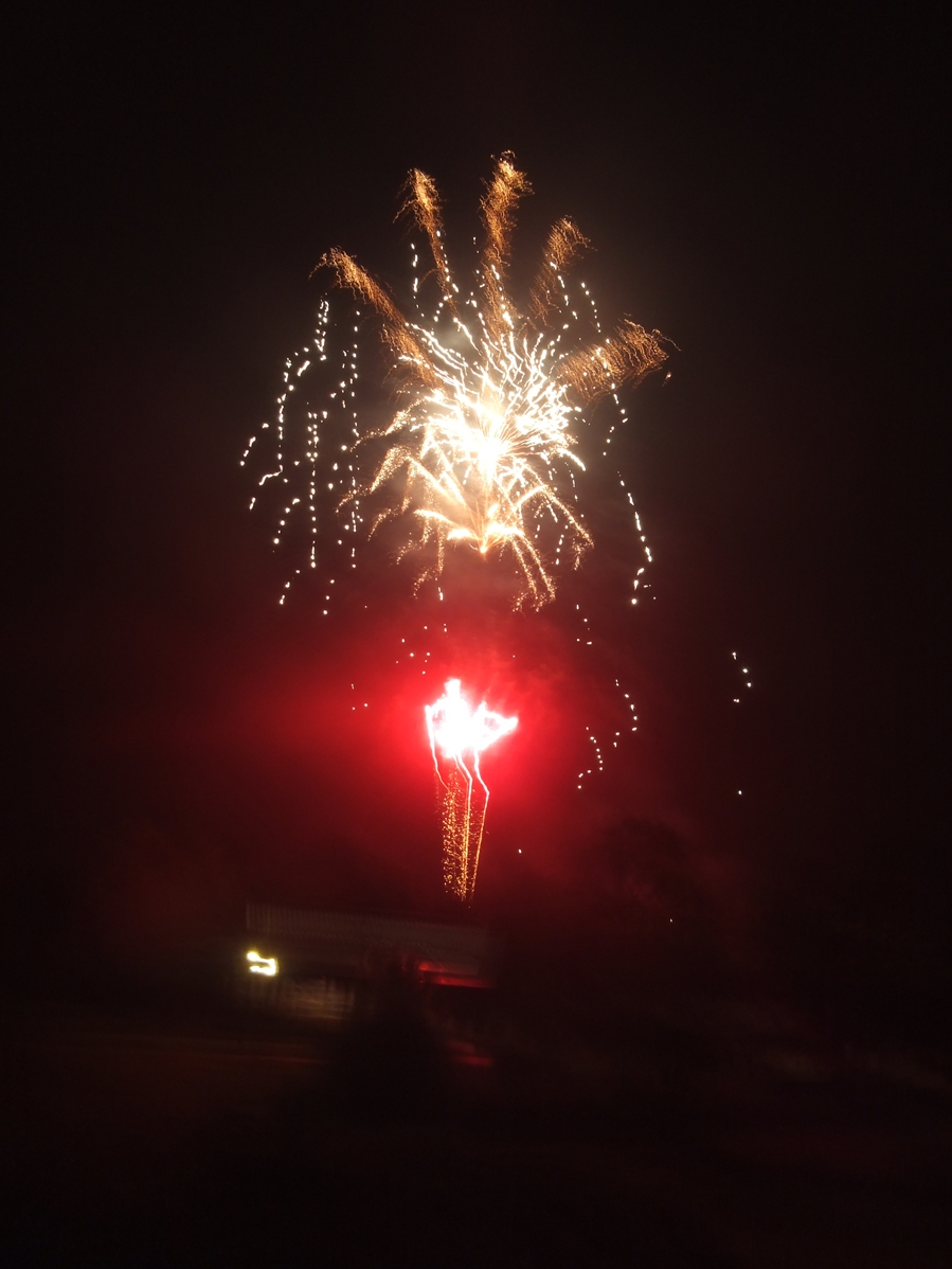 季節外れの花火に、完成があがり大盛り上がり(^O^)/
