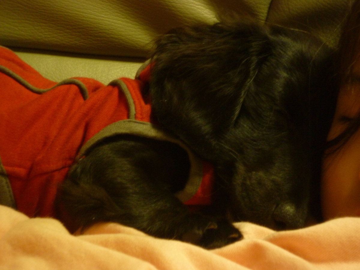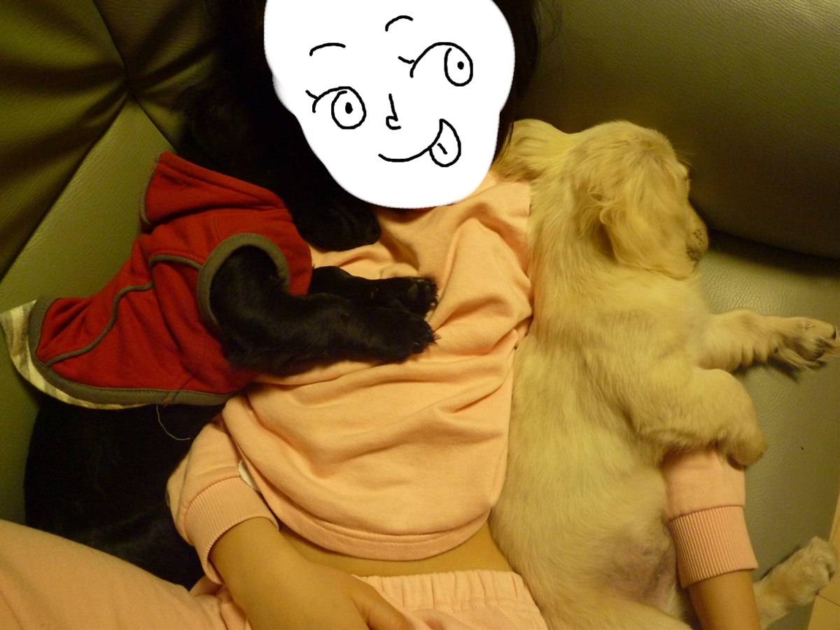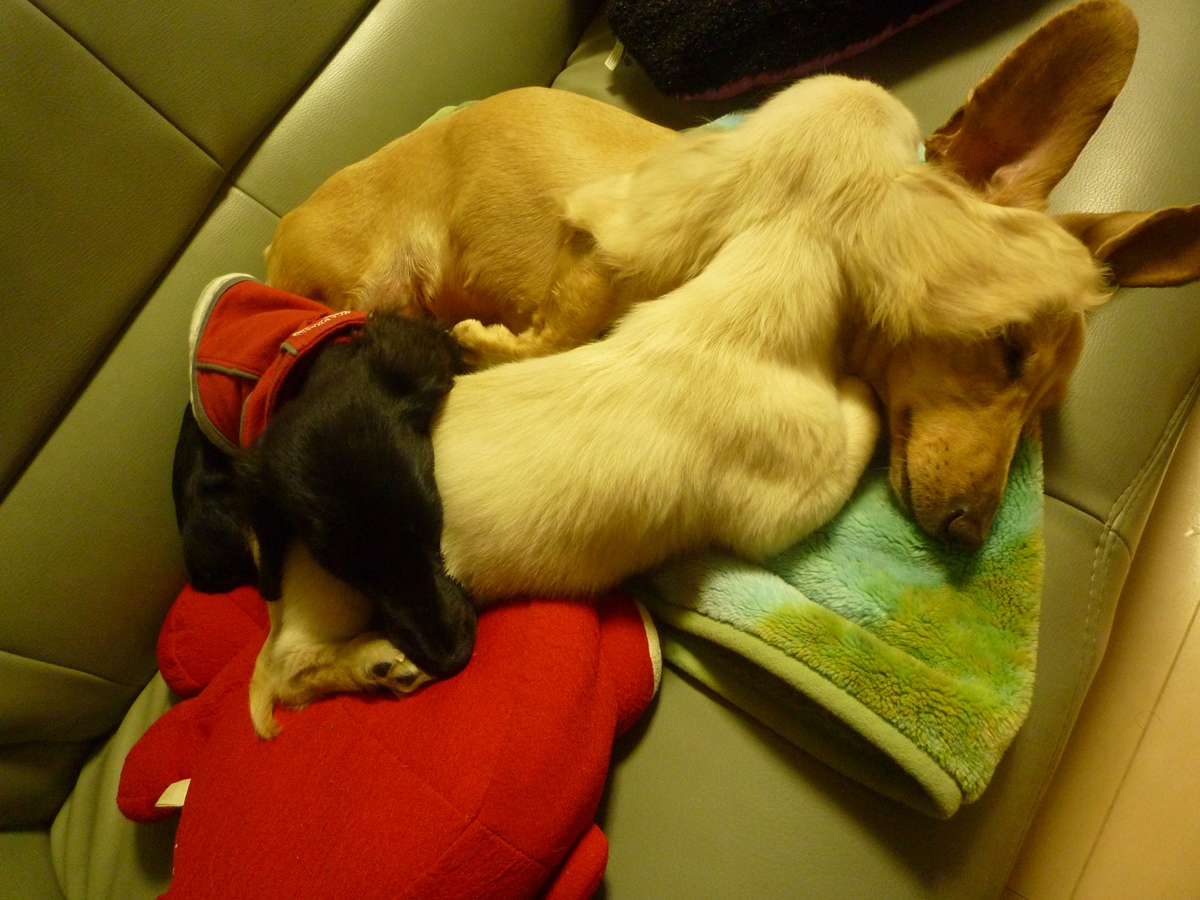 ワカも、顔をピタッとつけて、グッスリ!