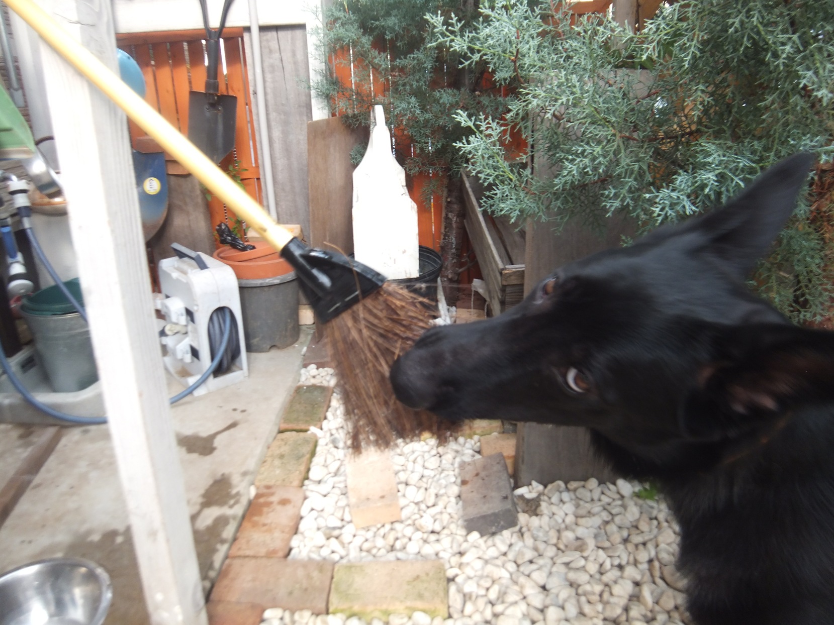 ほうきの引っ張りっこに~